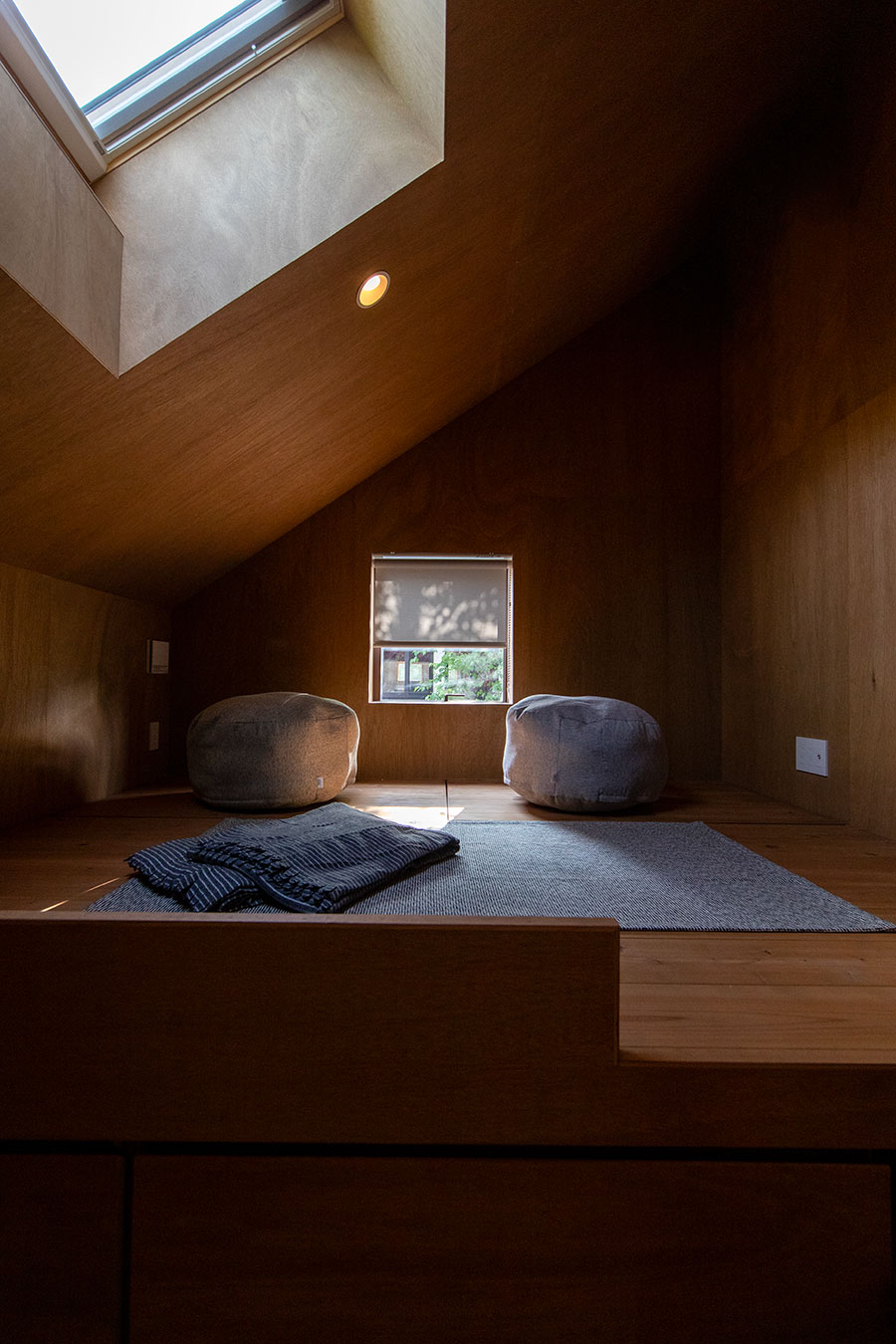 コテージを意味するHUISJE。落ち着きのあるシンプルな外観をした宝箱。その中には幾つもの「間」が組み込まれている。あたたかな木肌で包まれた開放感のある吹き抜けダイニング。薪ストーブの炎を楽しみながらこもれるヌック。ふと動きをとめ、家族の様子を眺めたくなるブリッジ。只々オープンなプランでは味わう事の出来ない多種多様な「居場所」が、家の至るところに生まれている。窓の向こうにひろがるお庭と、そこに根付いていく四季が空間構成に参加するとき、どれだけ過ごしても飽きのこない、素敵なHUISJEが出来上がる。